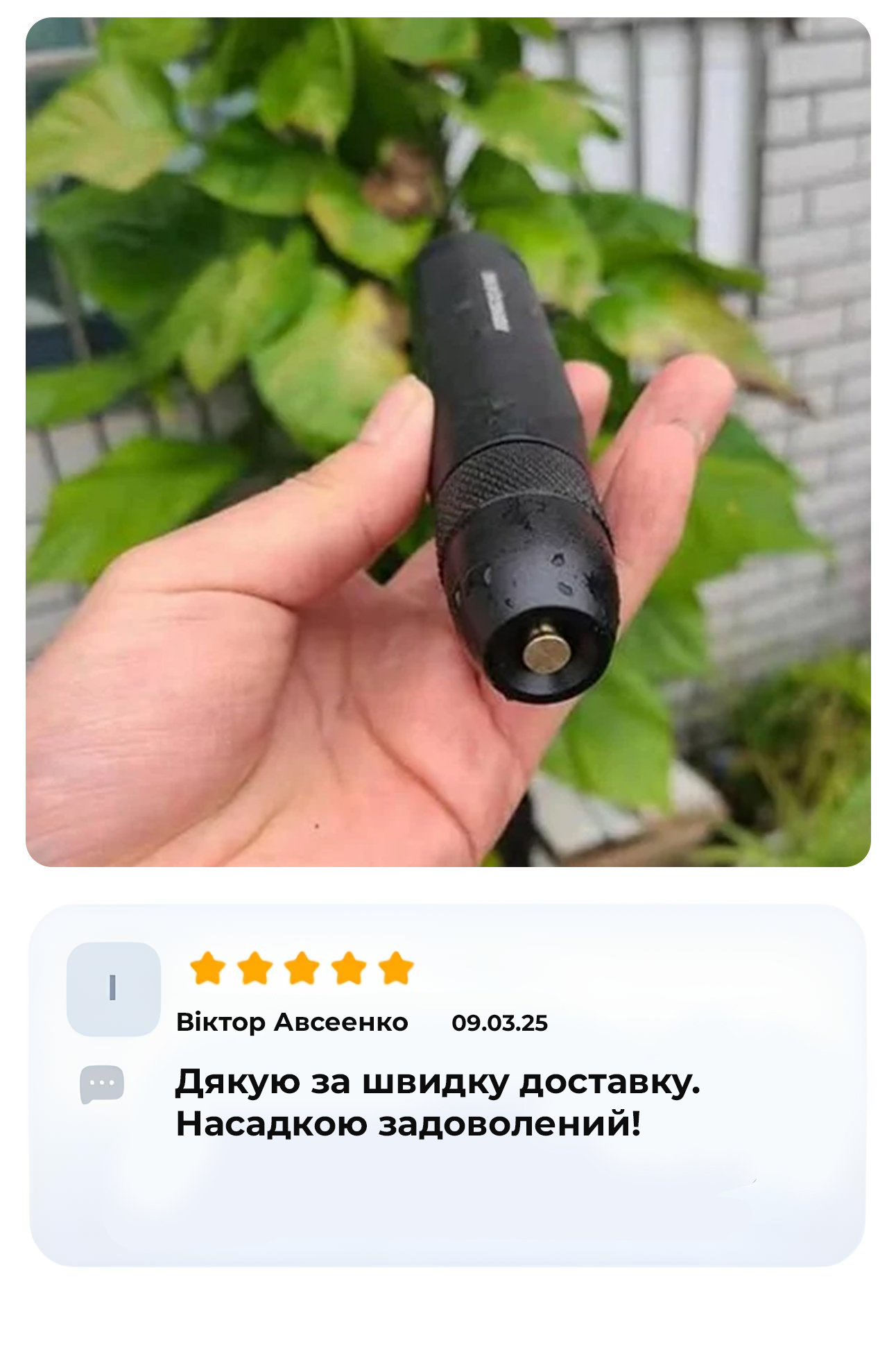 Насадка оснащена регулюючим колесом, що дозволяє швидко і легко перемикати силу напору в один рух.