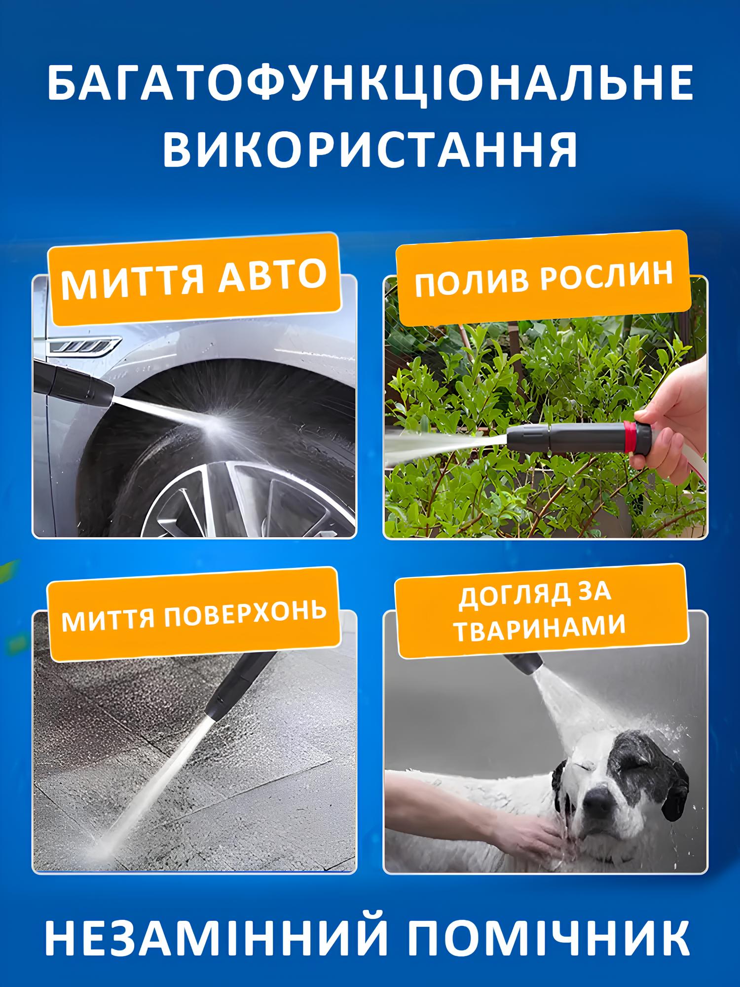 Професійне миття автомобілів та мотоциклів, полив саду та газону також може використовуватися для прибирання ванних кімнат, кухонь, балконів, коридорів, килимів і т.д.