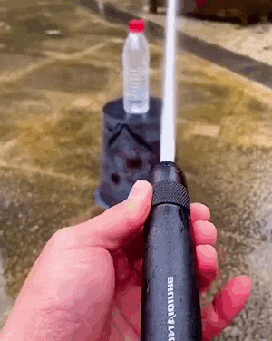 Можна під'єднати як звичайний садовий шланг, так і тонкий шланг високого тиску, що використовують на мийках